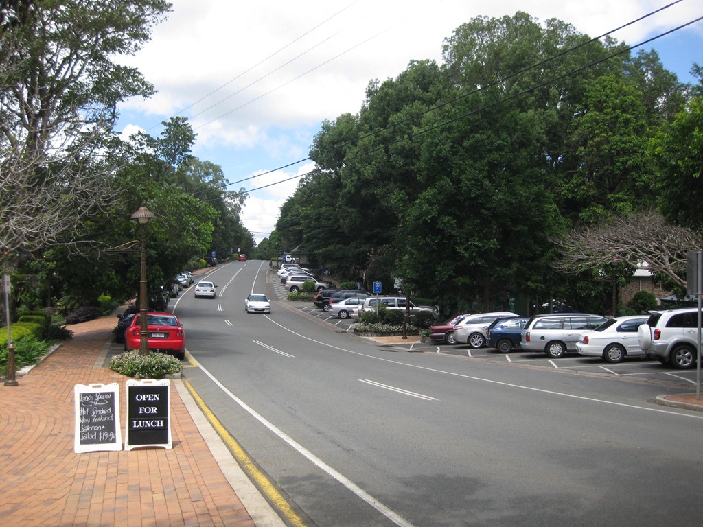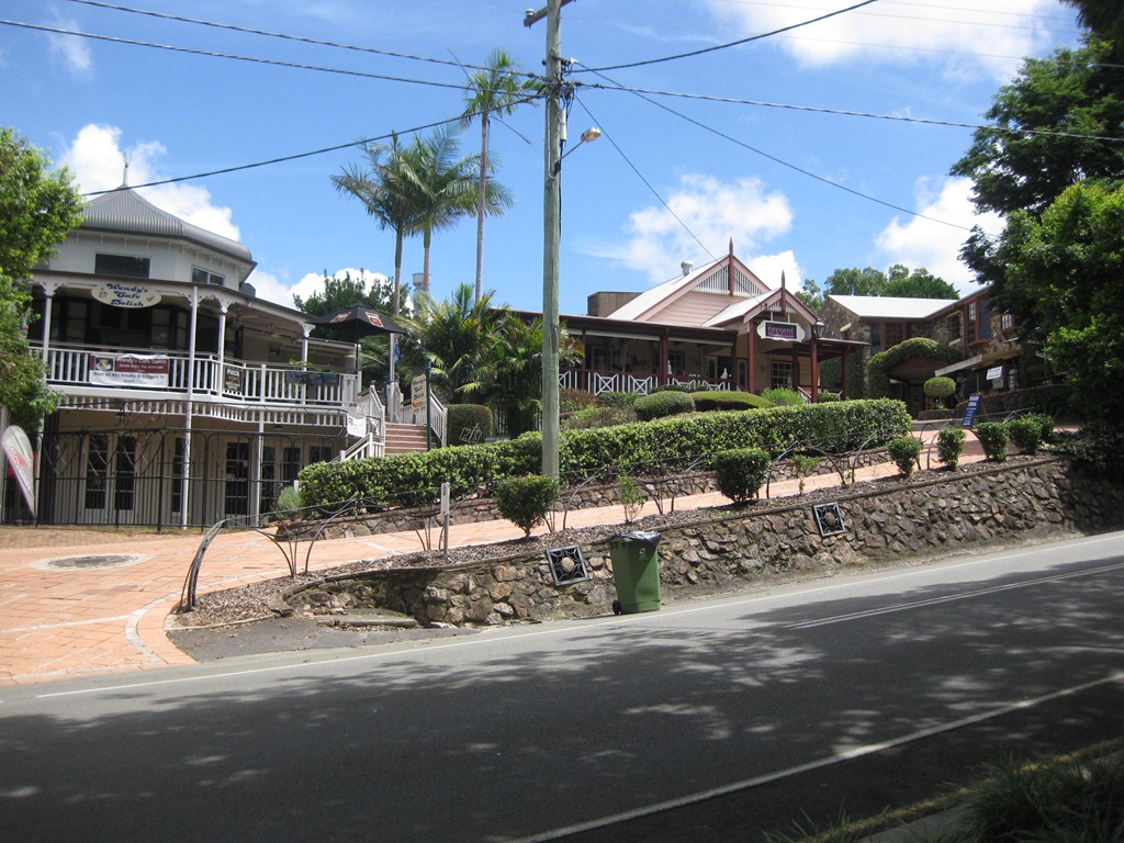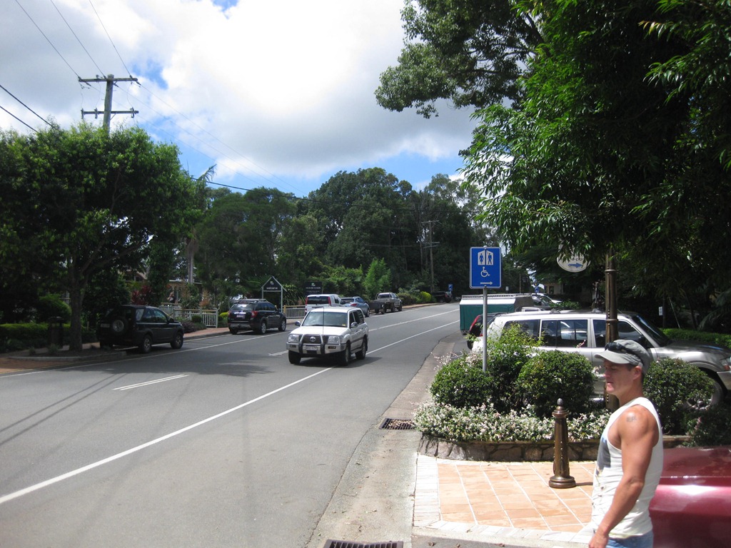Emerged from this gloat track glued to the side of a mountain smack in the centre of Montville, and it’s exactly as I remember it. A late 1800’s logging village now relying totally on tourism. A chamring main street runs along the top of the range with houses and businesses perched procariously either side. See view from Poets cafe.