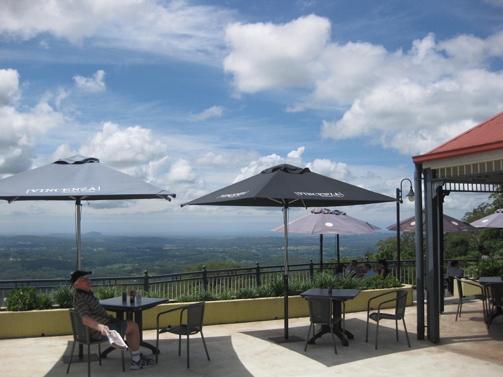 day3: Early brekky. It’s a nice day for a change so it looks like we should take the pug for a spin up the mountain. The stupid Satnav took us half way back along the coast road before joining the Sunshine Motorway. Still, not a total loss as the beaches are sparkling in the bright sunlight today