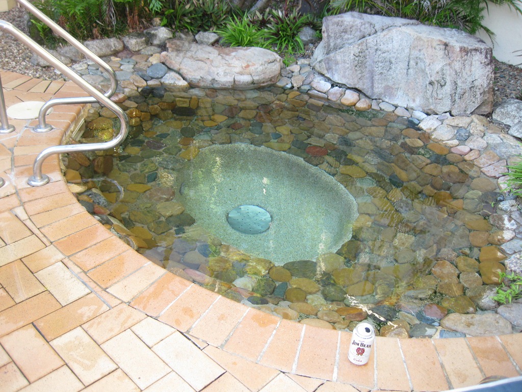 We’re feeling like a lazy day by the pool so a slow leisurely walk back to the top of the hill. The resort looks back towards the river which you can see through the palm trees outside our unit. The resort, once beautiful and thriving, is now a bit down-at-heal. Both the restaurant and bar are both closed. None of that matter when you are sitting in the spa with a cocktail in hand. Still, it’s clean and tidy and the units are large and comfy.
