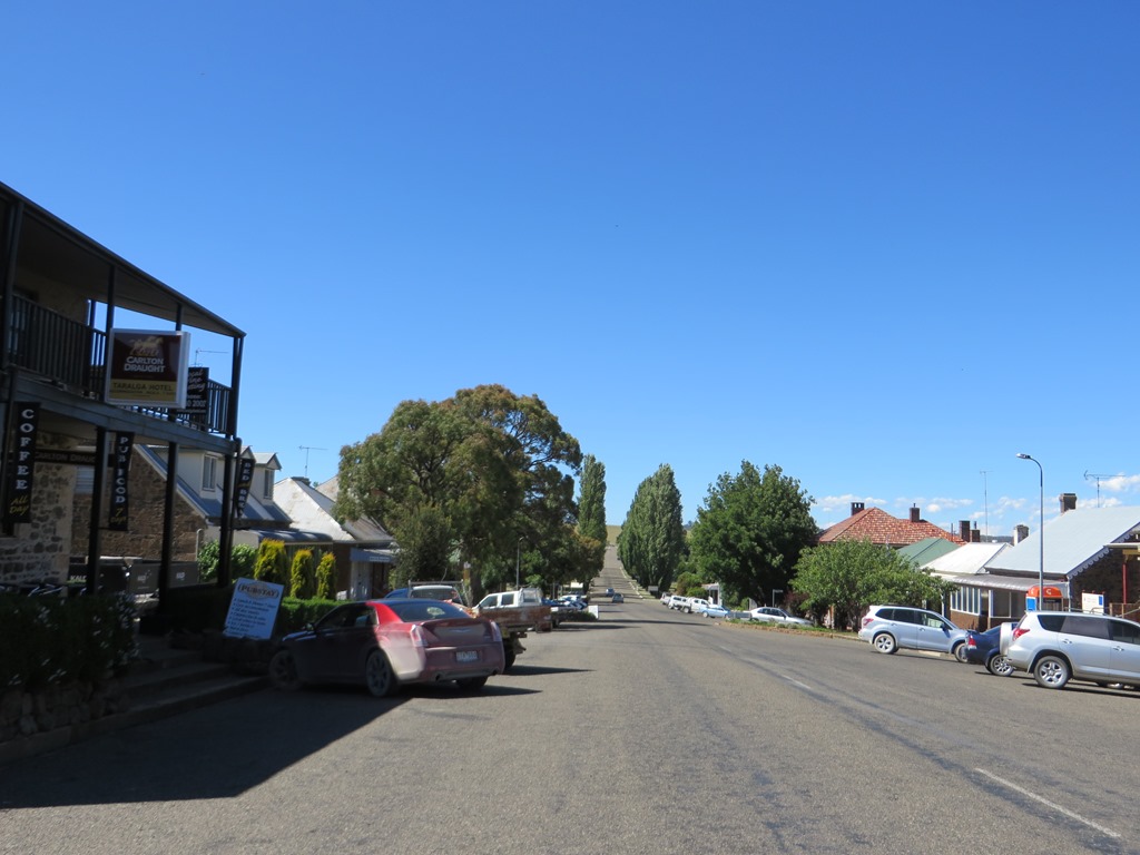 Below: By now it is late and we are low on fuel. It is late so we must press on to Taralga. The is the tree lined road through the camping ground at the Wombeyan Caves.