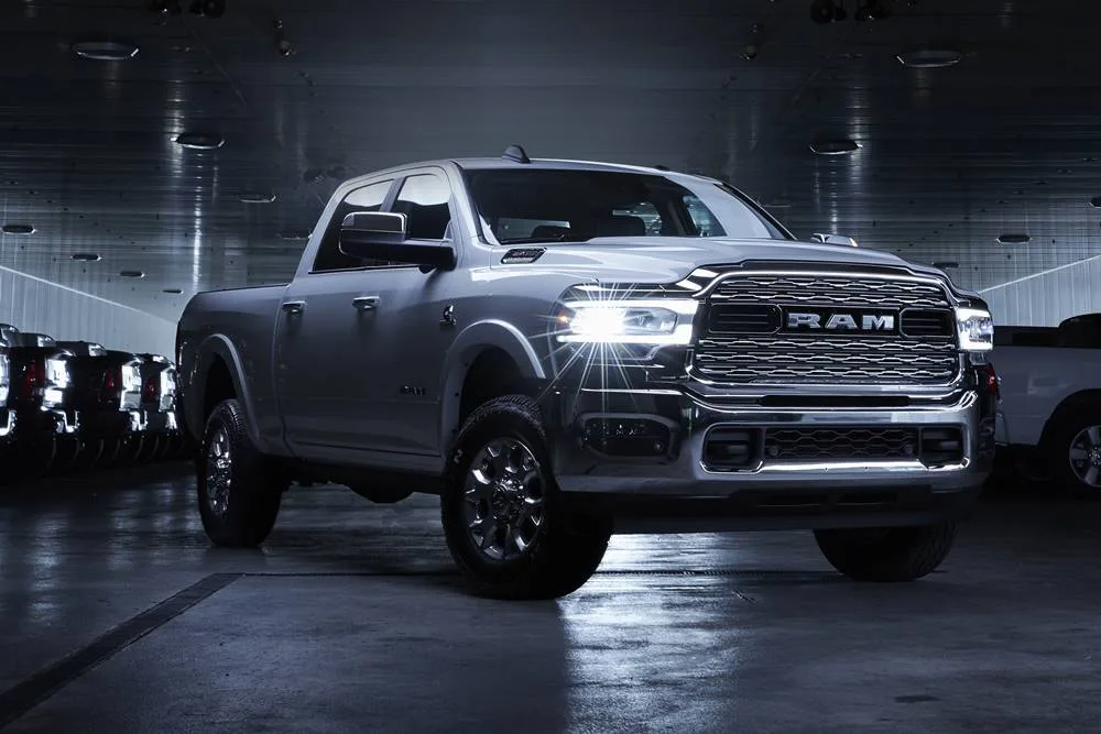 There is a new, lighter aluminium hood, and larger front grille, new front bumper t with larger openings, and more than 20 sensors surrounding the RAM 250. They are integrated to make them less visible. There is a new look front air dam and full LED headlights .