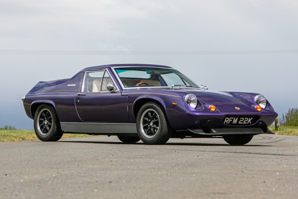 The Lotus Europa was launched in 1966 by Colin Chapman using his design style of Simplify, then add lightness which culminated in an economically produced, mid-engined, two-seater at a reasonable cost. In 1971 the S2 Type 74 Europa Twin Cam became available with 105bhp and this particular car has undergone a body off and new chassis restoration over a 12-year period. It has been fastidiously carried out and repainted in Roman Purple with a cream leather interior.
