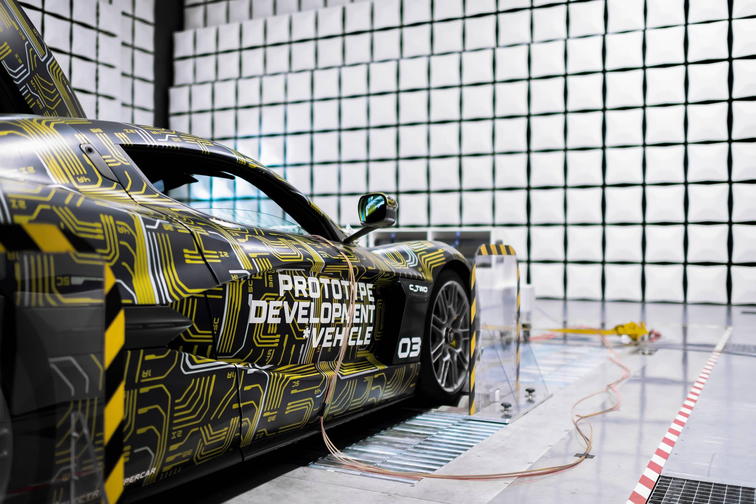 During the tests themselves, the prototype C_Two is driven at certain speeds and subjected to radiation levels of between 20 MHz and 20 GHz. At specific intervals, electrically-based systems such as the air conditioning, lights, and wipers are also turned on to assess whether the car performs as expected, flawlessly, and reliably every time. In keeping with the car’s advanced features, the tests also take into account each of the car’s specific drive modes, such as Range and Track, to ensure that the car’s inverters and power distribution react as predicted.