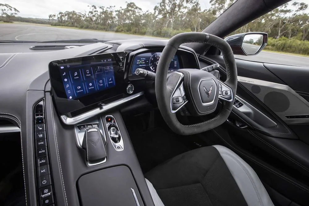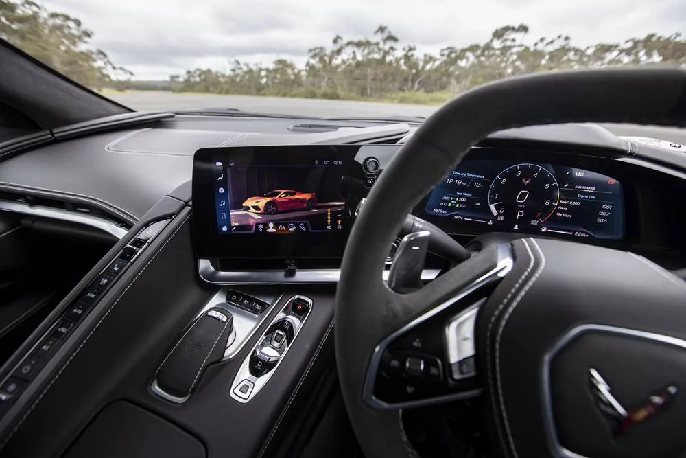 The LT2 V8 made its debut in the 2020 Corvette, and goes from V8 to V4 to save fuel. Mashing your foot mindlessly to the floor negates any small savings, but careful motoring drove our figures down from 58.8L/100km (when we collected the Stingray), to a less frightening 18L/100km. The range on the 70L (96ron) tank was around 143km when we started off. Hats off to the previous occupants.