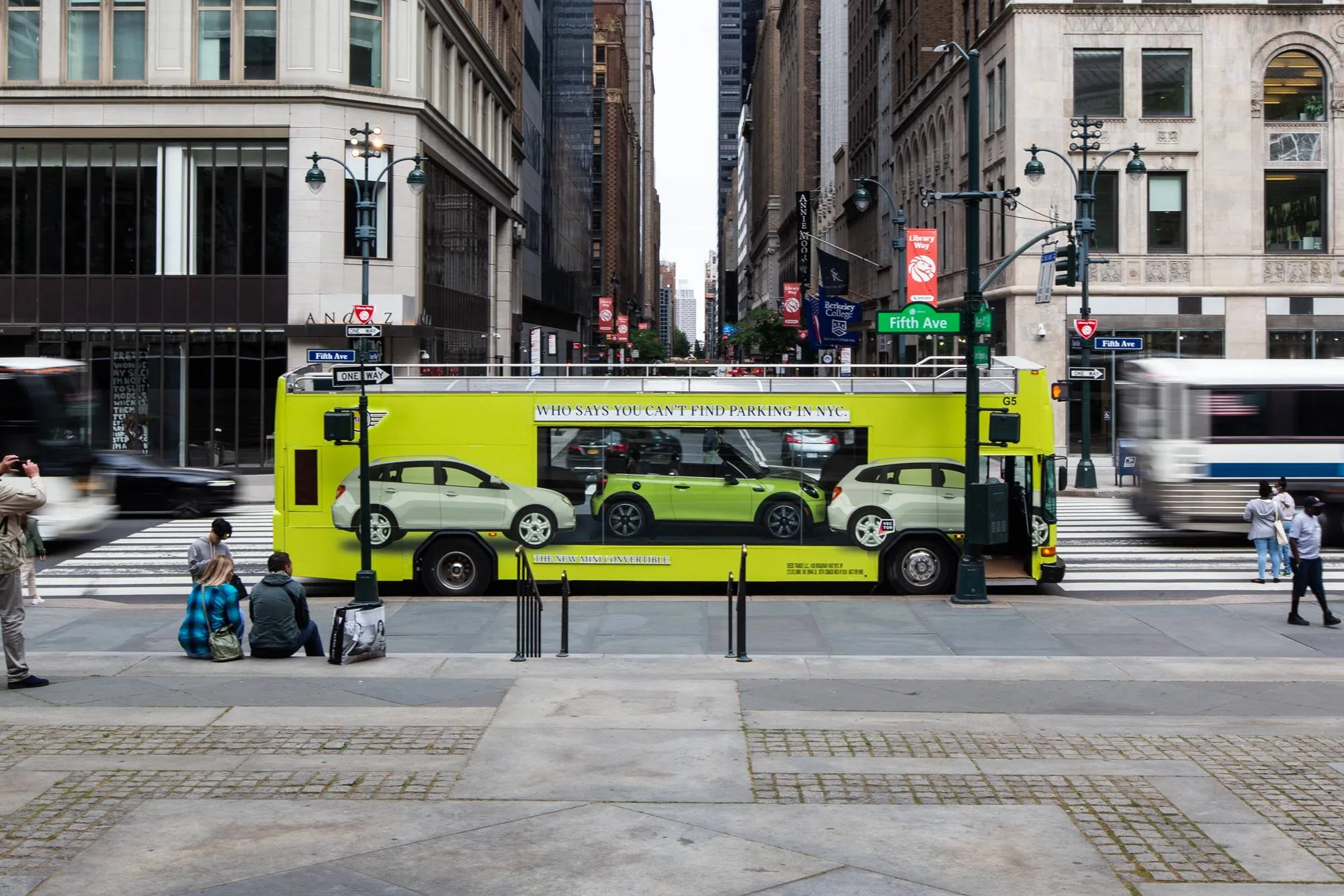 Mini is compact, so fits in a bus, therefore finding a park in NYC should be a doddle, right? At least, that is what the campaign says. Whoever came up with this catchy campaign is completely on point.