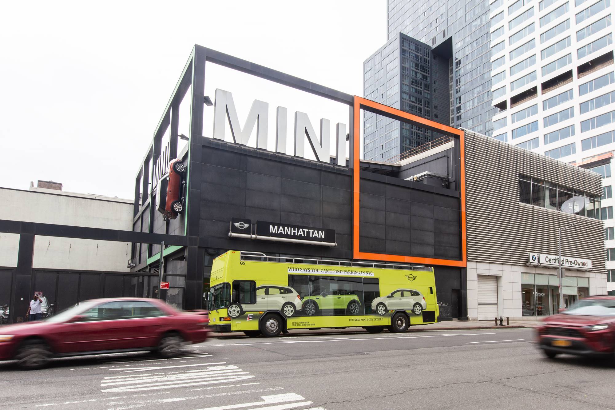 Mini is compact, so fits in a bus, therefore finding a park in NYC should be a doddle, right? At least, that is what the campaign says. Whoever came up with this catchy campaign is completely on point.