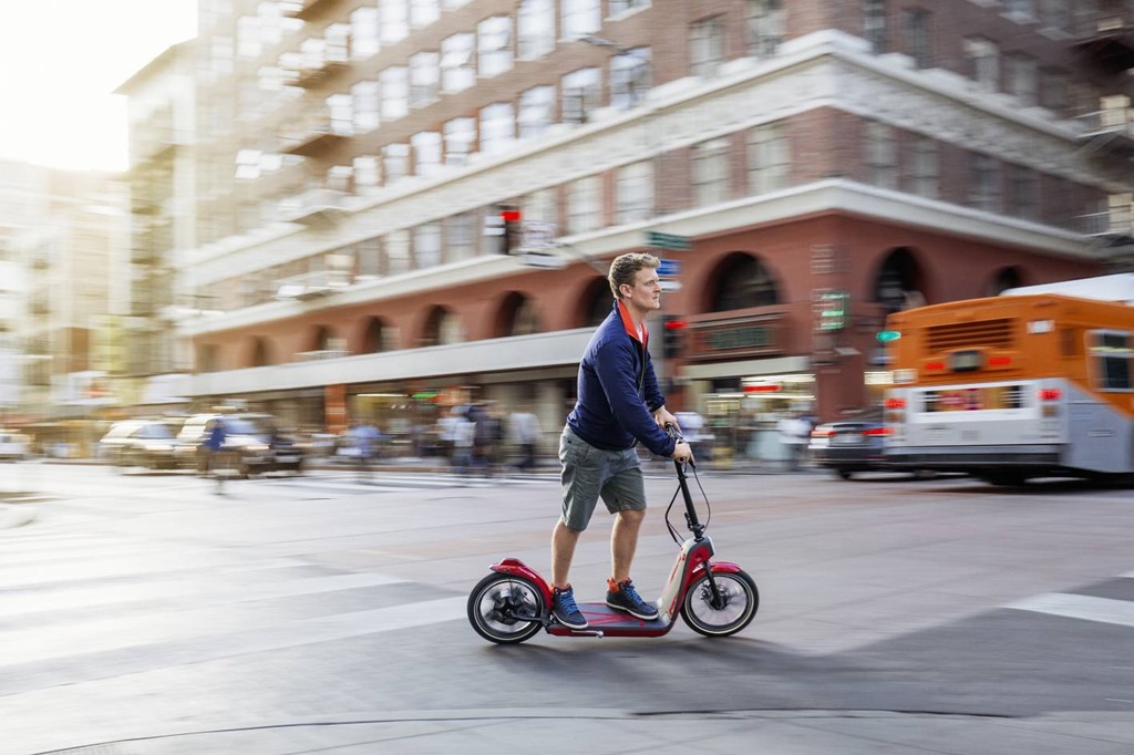 The handlebar position and the folding mechanism for stowing away the vehicle are fitted with a safety mechanism in order to ensure that the telescopic shaft and the folding joint are correctly adjusted when setting off.