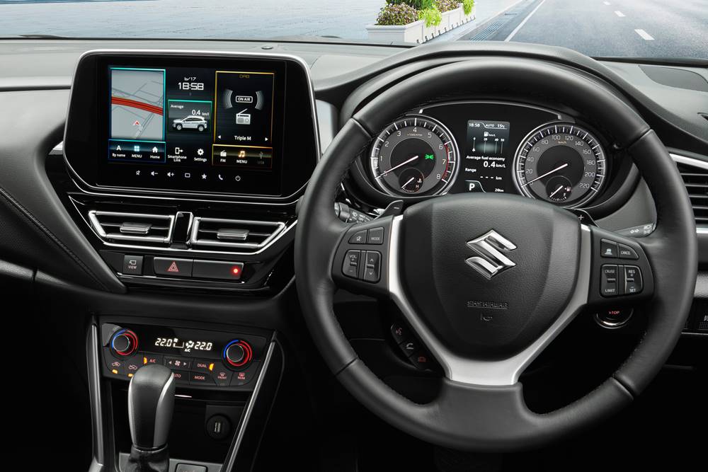 Safety includes Suzuki Safety Support, with AEB, Lane Departure Warning and Prevention, Weaving Alert, Blind Spot Monitor and Rear Cross Traffic Alert. The system uses hi-tech cameras and sensors to make the drive as safe as can be.