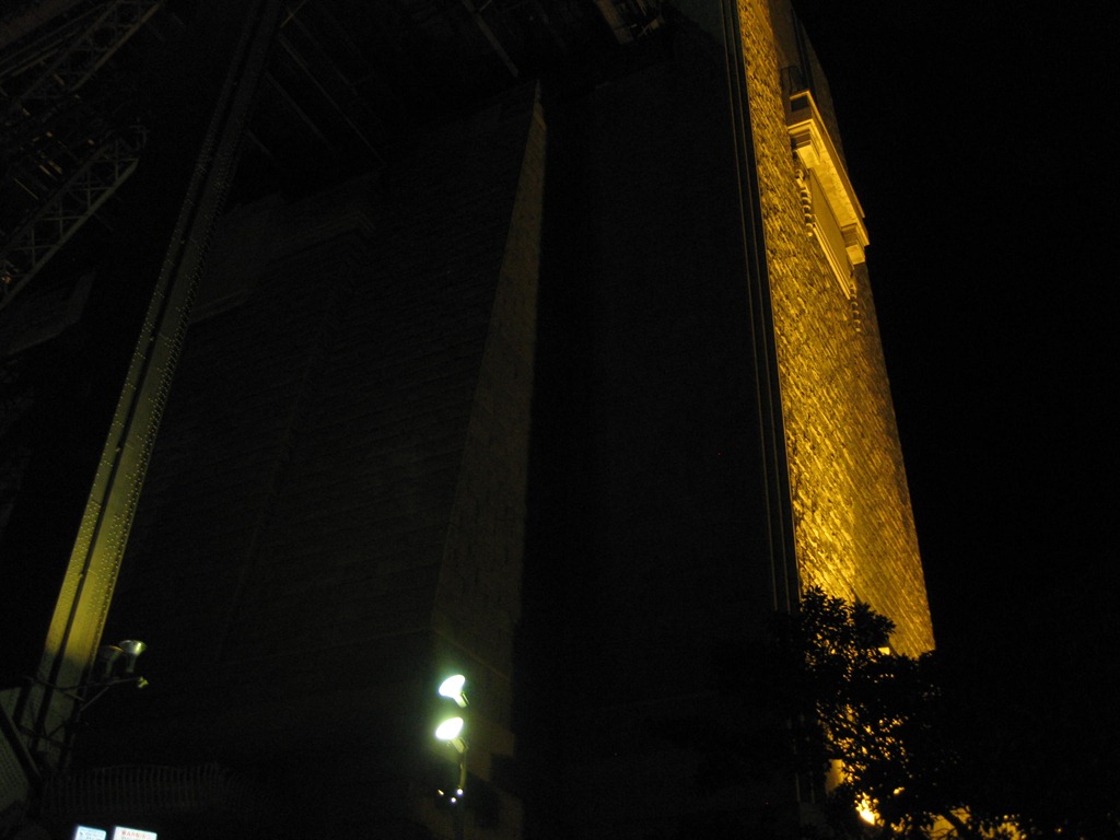 That’s the the Sydney Opera House peaking through cheekily under the bridge. It’s nice to see Sydney saves some electricity by turning off most of the lights after midnight. The land marks take on a spooky glow making them look even more spectacular. If you look really hard here you’ll see the arch doesn’t touch the huge granite pylons at either end.
