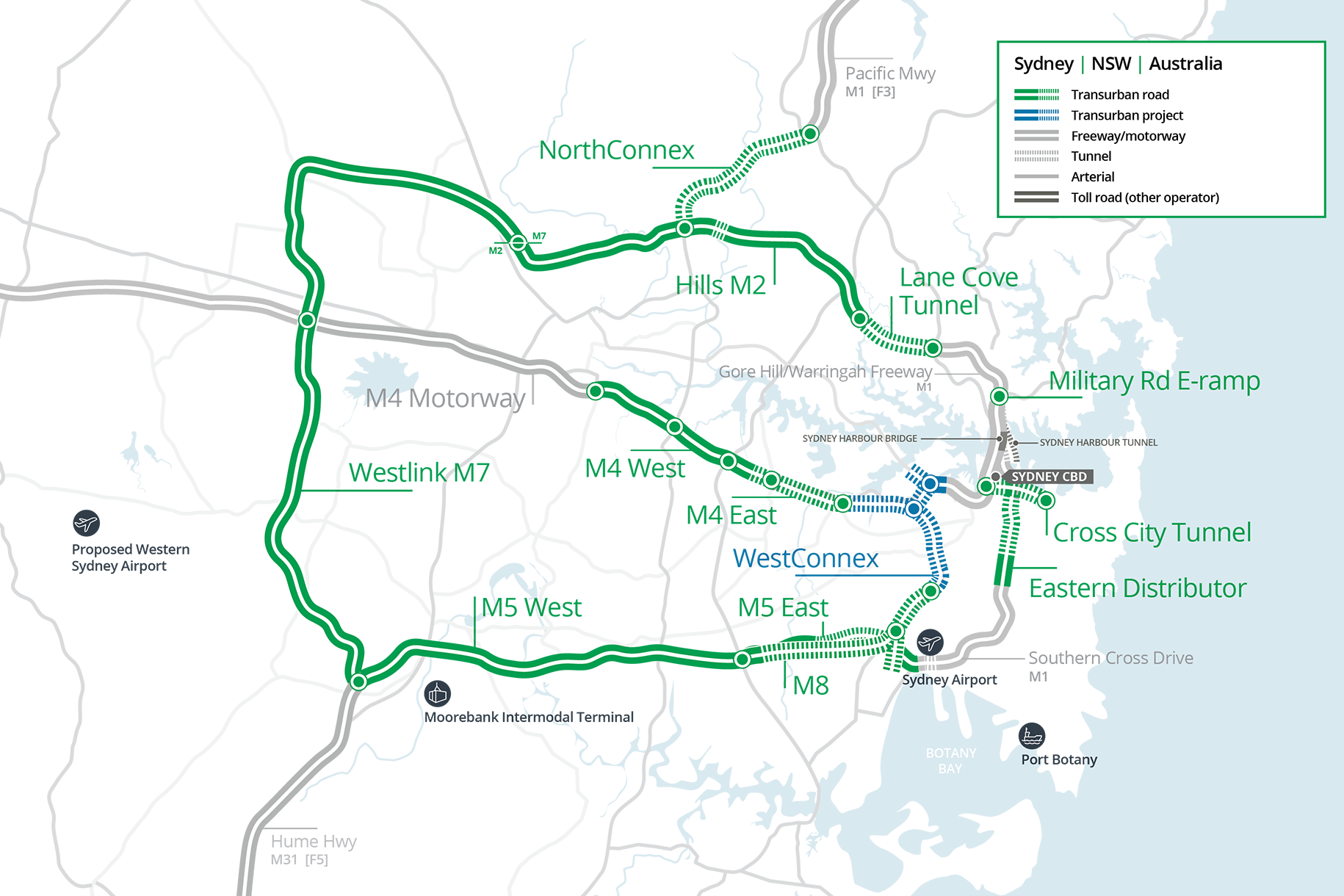 We’ve long complained about the tolling madness that exploded during the last decade of conservative government mismanagement. Previously un-tolled roads were tolled, then sold off to Transurban, the country’s largest toll operator. Wesconnex was one of the largest projects, and joins other new and existing tollways now under a monopoly over most of Sydney’s toll network.