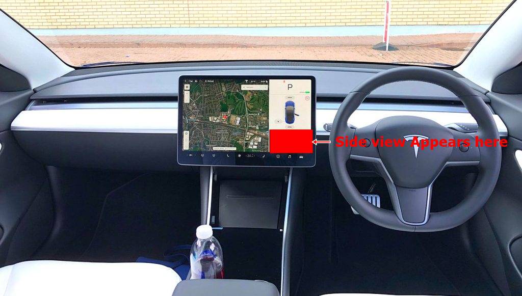 The new Model 3 updates now present a picture of the side of the car. The smallish live video is presented at the bottom of the driver’s display. That’s not exactly newsworthy. Lots of brands do that.