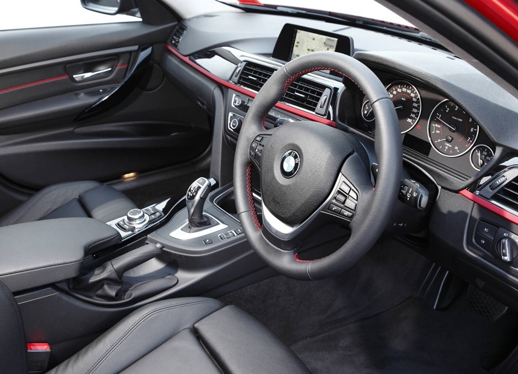 320i adds standard electric seat adjustment including memory function, rear view camera, 17-inch star-spoke alloy wheels, front Park Distance Control, Sports leather steering wheel and an interior lights package that provides additional reading, vanity and ambience lighting throughout the car.