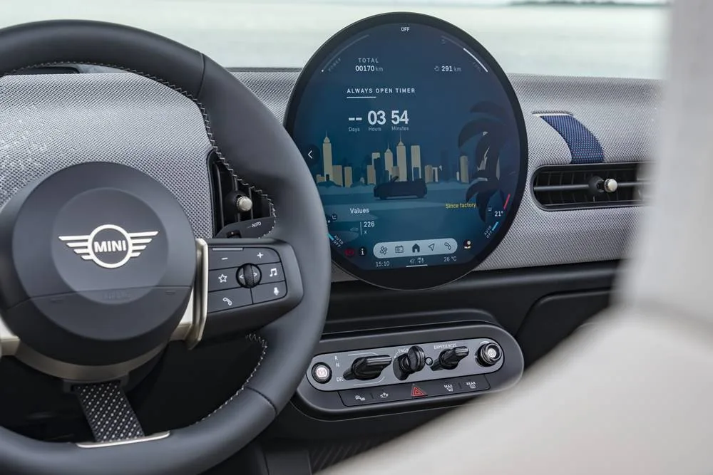 Interior Features: Comfort Meets High-Tech Step inside, and you’ll find a cabin that’s all about blending luxury with practicality. Unlike the classic Mini with it “less is more” approach, high-quality materials and a modern design make new Mini comfortable space. The centerpiece is a stylish central OLED display that puts all your driving information at your fingertips. It takes a little getting used to, but quirky is good if you call it “personality.” Plus, the sporty steering wheel and toggle switch bar give add to the fun fell