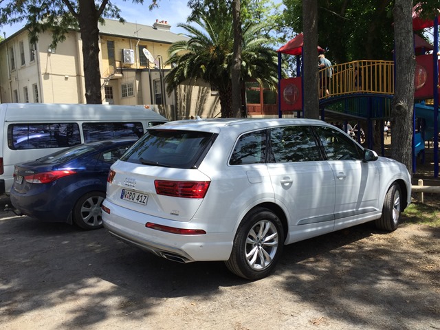 1: The Q7 takes up most of a parking spot. This is no problem as the reverse camera has many modes, one of which is a 360° aerial view. It’s a great idea but not so easy to use around posts and pillars. For some reason the posts are a bit hard to see. They’re much easier to navigate using the windows and a door mirror or two. There is an automated parking option if you’re completely useless.
