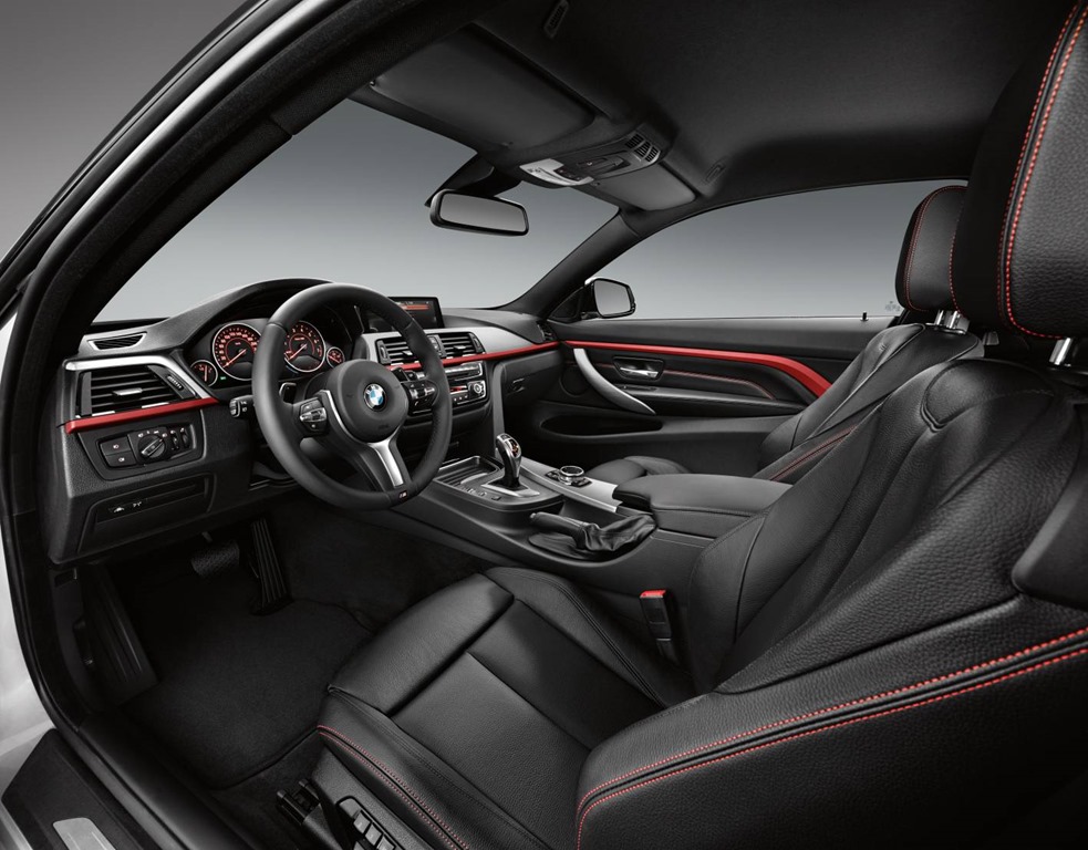 The ‘Sport Line’ features specific high-gloss black for the front and rear bumper trims, kidney grille, b-pillar trims and window recess covers with a black chrome trim for the exhaust tip. The interior is also characterised with chrome pearl grey surrounds on air-conditioning and radio controls, sport leather steering wheel with red contrast stitching, high-gloss black interior trim with coral red accent lines and the choice of black leather upholstery with red stitching or coral red upholstery with black stitching. The 420d Coupé will also receive 18-inch double spoke style alloy wheels with the 428i Coupé getting 19-inch alloy rims in star-spoke styling.