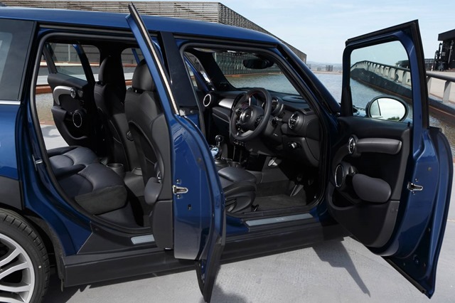 - Wheelbase expanded by 72 millimetres (to 2,567 millimetres) over the new MINI; creates space for three seats in the rear, with 72 millimetres more foot space and legroom, 15 millimetres more headroom and 61 millimetres more interior width at elbow height; luggage compartment space boosted to 278 litres, 67 litres more than in the 3 door model; excellent figures for the small car premium segment; rear backrest with 60:40 split; optional storage package including luggage compartment floor which can be locked into place at varying points.