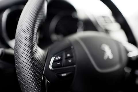 The Peugeot steering wheel is padded or leather trimmed and permits control of the audio functions, cruise control and Bluetooth hands-free kit.