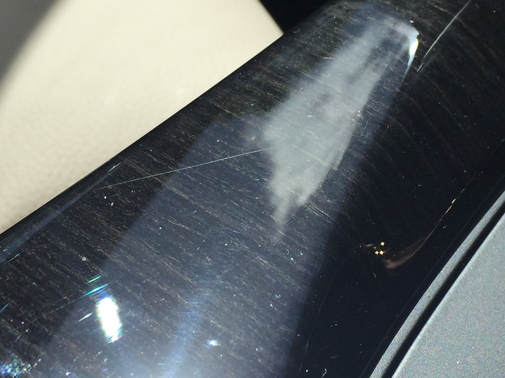 My concern with the interior is that shiny surfacing might look shabby after a few years. The test car had some nasty scratches on the centre console’s wood trim. The same goes for piano-black, and even for metal-look finishes: once scratched, they look tatty. Matte finishes still show wear, but it is much less pronounced. You’ll also notice the fine “holographic” effect in the photos. This is the result of normal use. Someone has put a bag on the console and dragged it to the other seat, and it will only get worse. It is also on the doors and dash. I knew of an elderly Boxster whose interior had lived with a clueless owner. She would shriek at a chipped nail, but thought nothing of dragging all manner of flotsam around in the car. She complained that the trim didn’t look as fresh as when she bought it, as if it was a complete surprise.