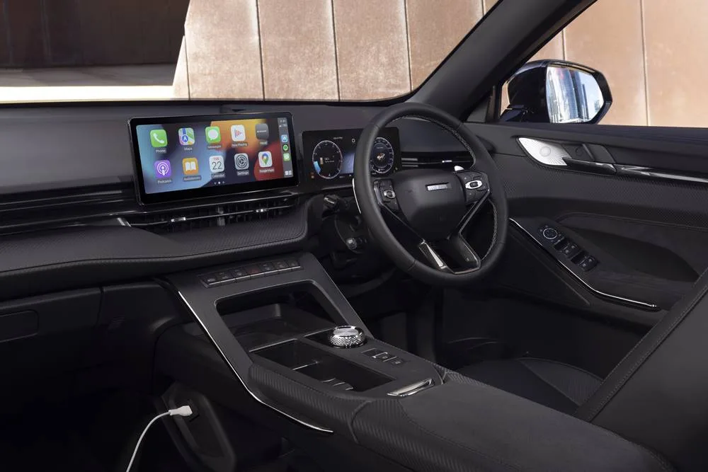 Up front is a 12v and USB for power and connection to CarPlay/Android Auto. In fact, the Haval H6 GT is loaded to the gunnels with stuff. LCD screens all-round, and a cool looking centre console with a 2-level effect. A Qi charger rounds off a decent layout.