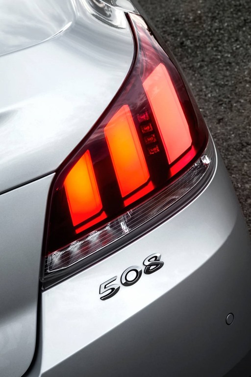 The new front end has super-efficient full LED headlights that look like 3 ice cubes in a cocktail glass. Just below is a “feline” line of LED daytime running lights. These are on at all times but when the indicator is flocked on, the white LEDs become the familiar orange with a Peugeot twist. Instead of simply flashing on and off, they sweep gracefully from the centre outwards. The rear end gets the LED treatment too with 3 lines representing the Peugeot lion’s claw, or paw, or something like that. While you’re around the back end, try finding the boot release button. Clue: it’s in the “0” of the 508 on the bumper.