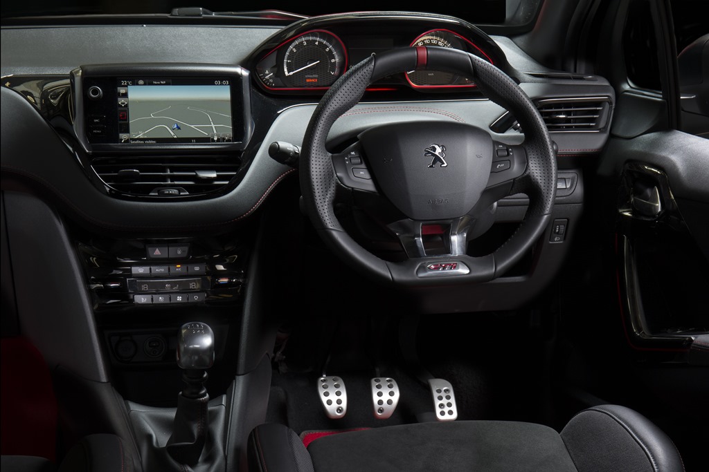 The interior of all new Peugeot’s is delicious, the 208 GTi 30th particularly. The tiny steering wheel allows the instruments to be over the top rather than through it. Once used to it you start to imagine it very much like a heads-up display. If the seat isn’t adjusted properly some will think it awkward. Once in the right spot, view is excellent. I asked why not just have a normal heads-up display but there was no clear answer. Someone suggested a cost thing, someone else said design so we may never really get to the bottom of the new cockpit thought processes.