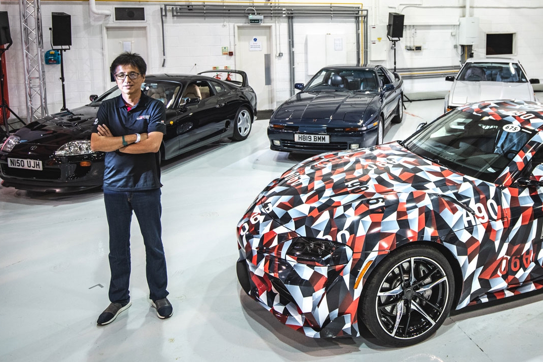 ABOVE: Akio Toyoda and 2021 Toyota Supra