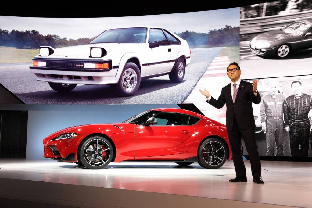 ABOVE: Akio Toyoda and 2021 Toyota Supra
