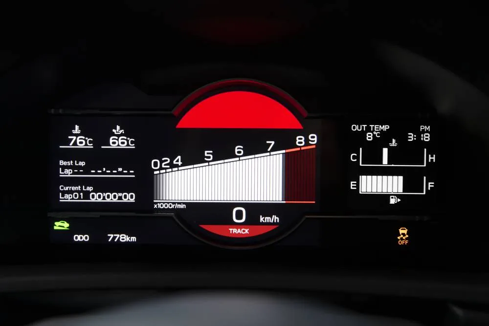 A smallish 7” drivers screen joins a modest 7” central LCD, where all the displays and settings can be found. The track display is a bit of fun, because GR 86 is one of those unusual cars that will probably see some use for its design purpose: a track car. As fab as that is, most of the time it is on a road.