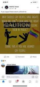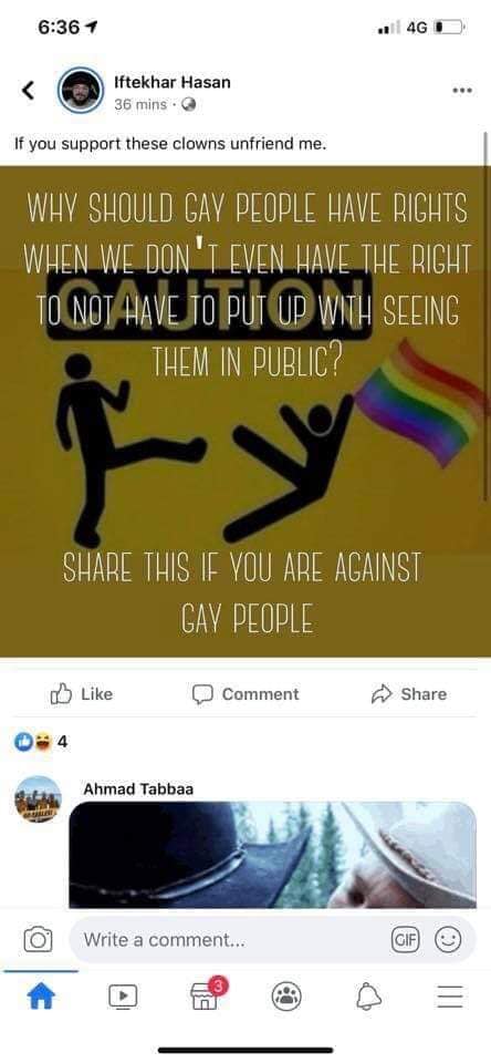 Hasan has been removed and blocked from the group, but this highlights the continuing threats of violence endured by the gay community.