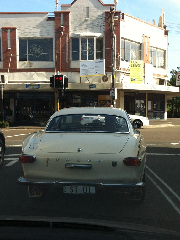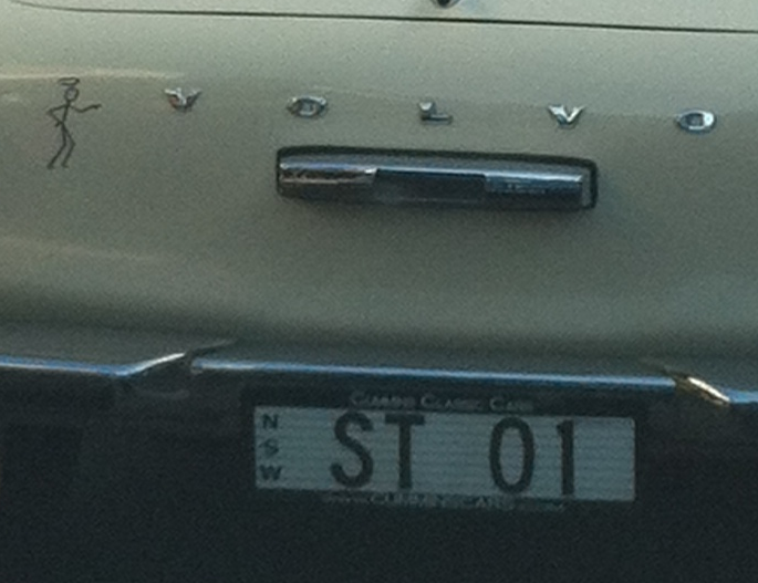You’ll remember our pictorial a few days ago featuring the P 1800 from Volvo, well what should I see that very after noon but a well maintained P 1800 Coupe. The owner is obviously a fan of the 60’s TV series from England starring Roger Moore as Simon Templar. The car has The Saint number plates ST 01 as well as a small black line drawing featuring the Saint as drawn in the show’s opening credits. Kudos and snaps to the gent with immense good taste and a boundless sense of humour.