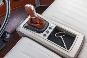 Power transmission is by means of a 1-speed gearbox. The drive system is coupled with the gear lever, which is now positioned between driver and front passenger seat. The automatic transmission’s selector settings (P, R, N, D, B) are shown next to the lever. In position B the driver can vary the degree of recuperation, i.e. of energy recovery when braking. The e-BULLI reaches a top speed of 130 km/h (electronically limited). With the original drive system the T1 managed a top speed of 105 km/h.