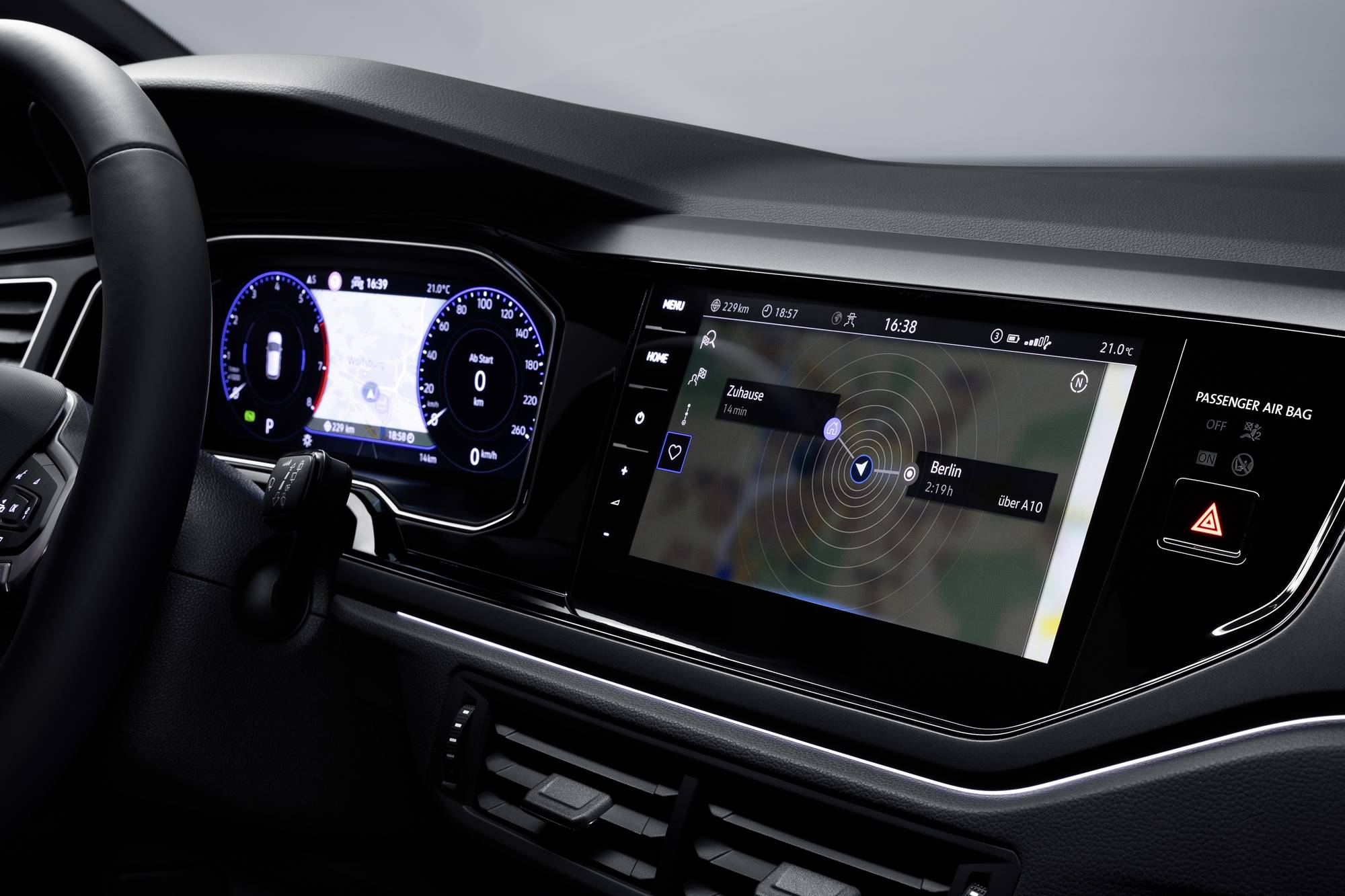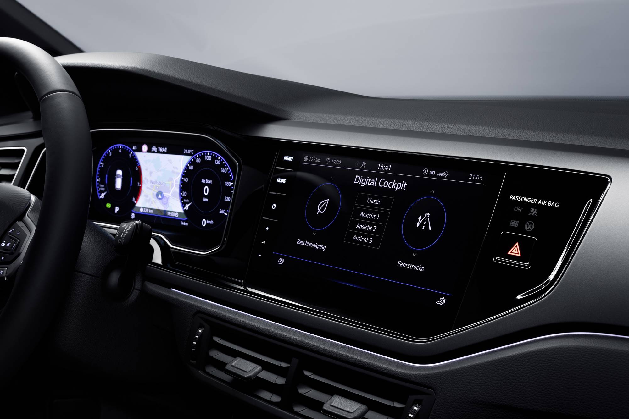 The 2 different navigation systems offer different levels of digital goodies. There is traffic sign display using a camera to detect the sign, which is then displayed on the cockpit screen. New digital twin zone climate control is an option. The Climatronic system is operated with touch sliders.