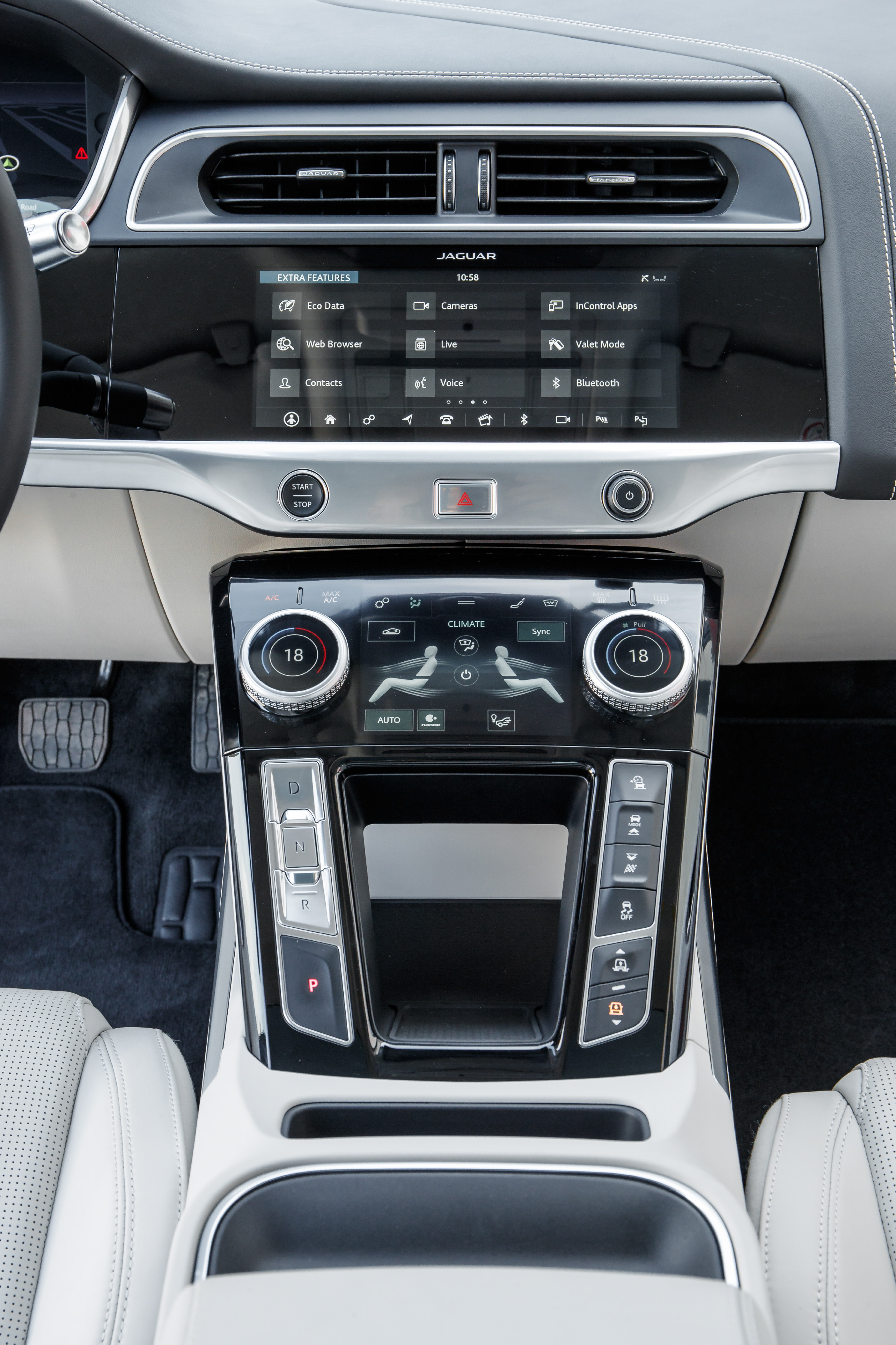 Stitching on dash and doors matches the seats and gives I-Pace the look of a finely tailored suit without being prissy or precious.