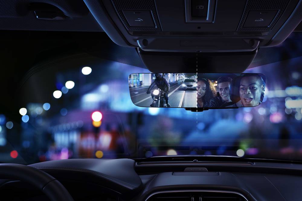 One thing you don’t see often is the camera in the rear shark fin that puts a live streaming video in the rearview mirror. I find it a bit hard to focus  on, so leave it turned off most of the time. The surround view cameras on the other hand, are sheer genius. Use them for pin-point parking, and to see if anyone is hiding, to do you harm.