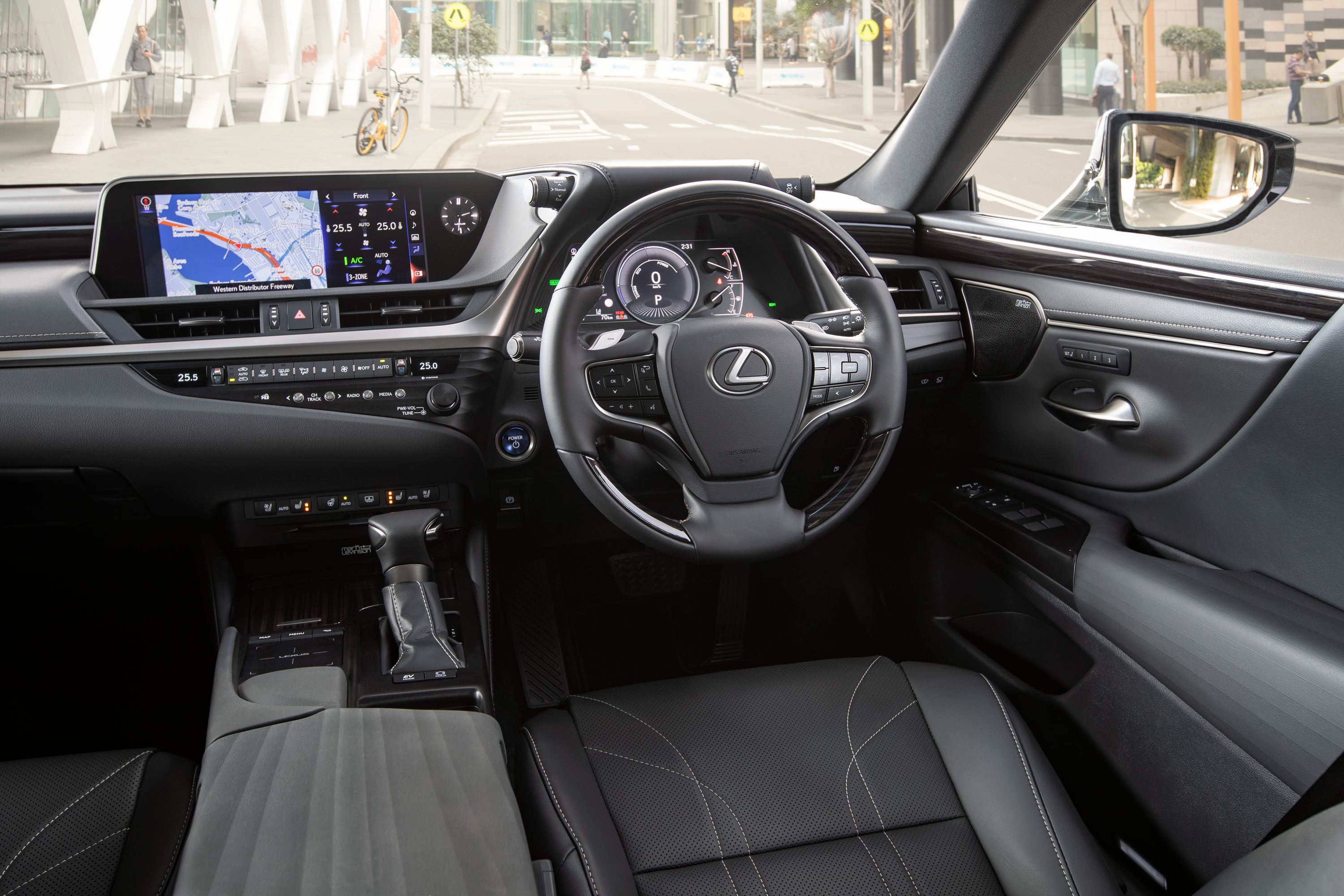 LEXUS ES has the newer style of cabin design including the infotainment system. As in the LS, the centre console lid hinges on either side so either driver or passenger always has the lid opening their way.