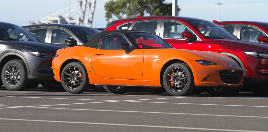 Mazda MX-5 (Miata) 30th Anniversary Edition arrived in Australia, and promptly sold out. The Racing Orange paintwork stands out in the crowd. In fact, it screams “look at me ploise Kimmoi”.