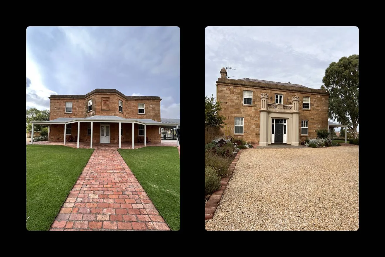 The mansion was built from stone ballast from ships coming to South Australia’s Victorian businesses, taking Australian goods back to Scotland., leaving the stone behind. The large estate is set only 50 minutes from Adelaide’s airport, deep in the romantic Barossa valley.