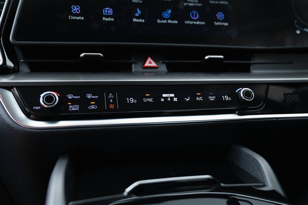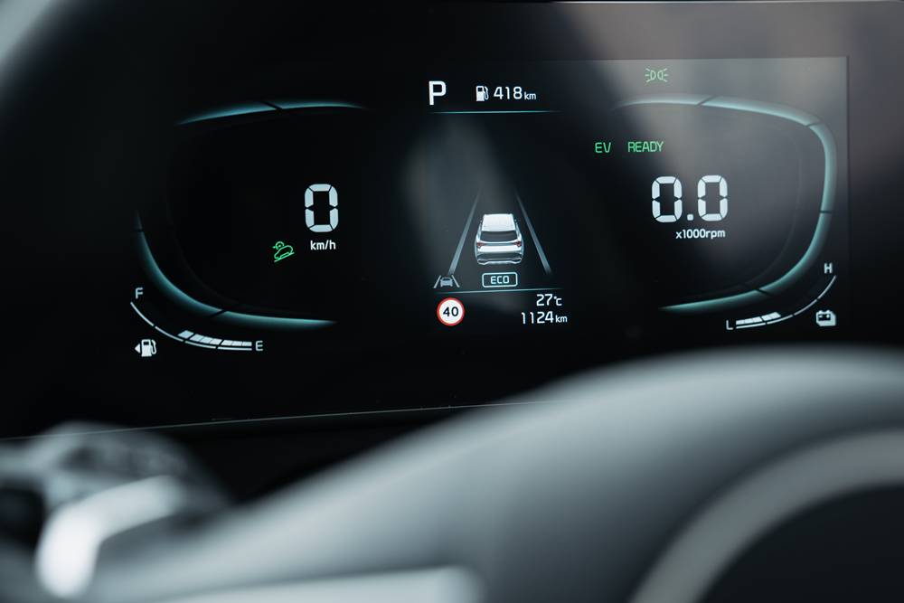 The Kia’s thrifty 4-cylinder hybrid puts a decent 169kw/350Nm to the front wheels via a beautifully smooth 6-speed automatic. The clever hybrid system stores otherwise wasted power in a hefty 37.5kg, 1.4kWh battery that lives under the back seats allowing plenty of room for that space saver spare tyre.