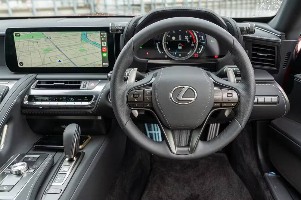 The Mark Levinsen sound system now has wireless CarPlay with concert hall-like responses at all ranges, and is controlled by touch, steering wheel, or voice. A couple of centre console buttons will get little use, but is a vast step up from the abominable LEXUS toggles of the past. The touch screen, previously recessed, now sits forward on the lavishly upholstered dash, where virtual touch buttons can be easily reached.