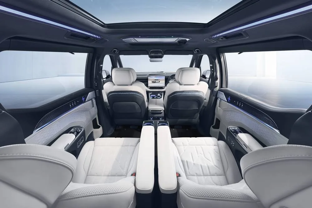 Zeekr 009 is filled with features to make every journey feel like a mini retreat. Imagine Nappa leather “lounge chairs” inspired by Eames, with leg rests, massage, heating, and ventilation to ease travel fatigue. The cabin comes in a sophisticated Stone Black finish, with customisable, no-cost options like a chic Jade Green tri-tone interior for added personal style.
